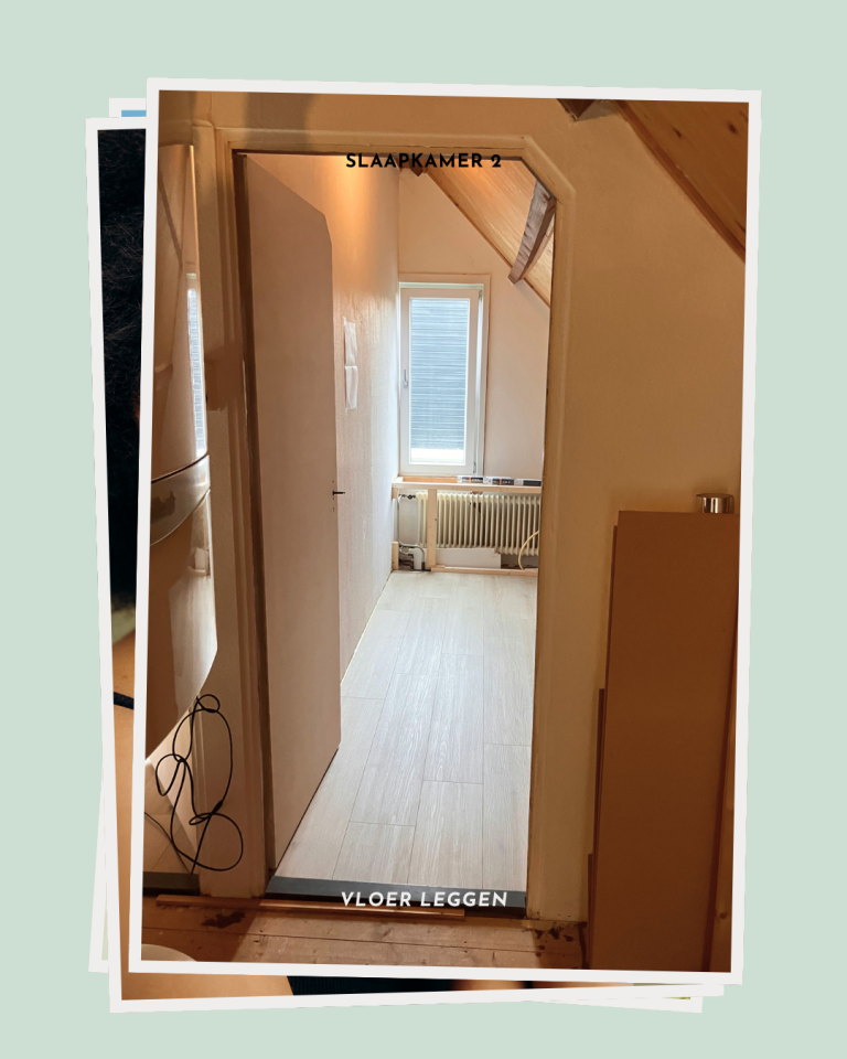 We besloten dezelfde vloer te leggen als in slaapkamer 1, zodat er een rustige en samenhangende uitstraling door het hele huis ontstaat.