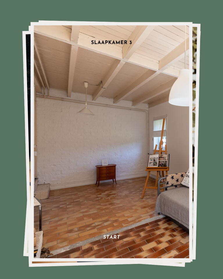 Tijdens de eerste bezichtigingen van het huis ontdekten we subtiele sporen van een voormalige slaapkamer. Het idee dat hier ooit een aparte ruimte was, bleef ons bezighouden.